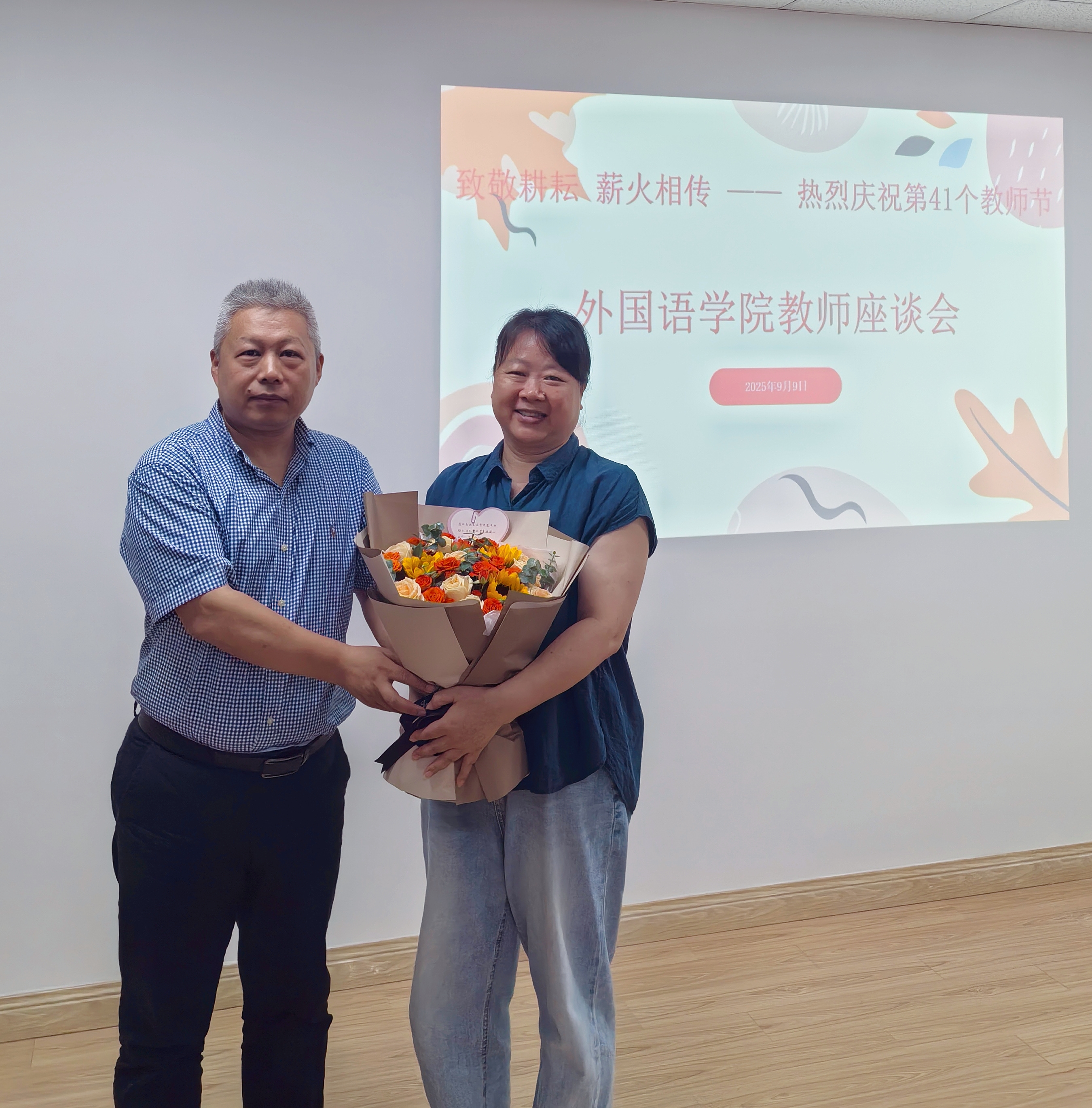 9月9日上午,在第41个教师节即将来临之际,外国语学院在B224会议室召开以“致敬耕耘,薪火相传”为主题的教师节座谈会暨新老教师经验交流会。学院领导班子成员、骨干教师代表、本年度退休教师及新入职青年教师齐聚一堂,共叙育人初心,同谋学院发展。会议由学院党委书记王华光主持。