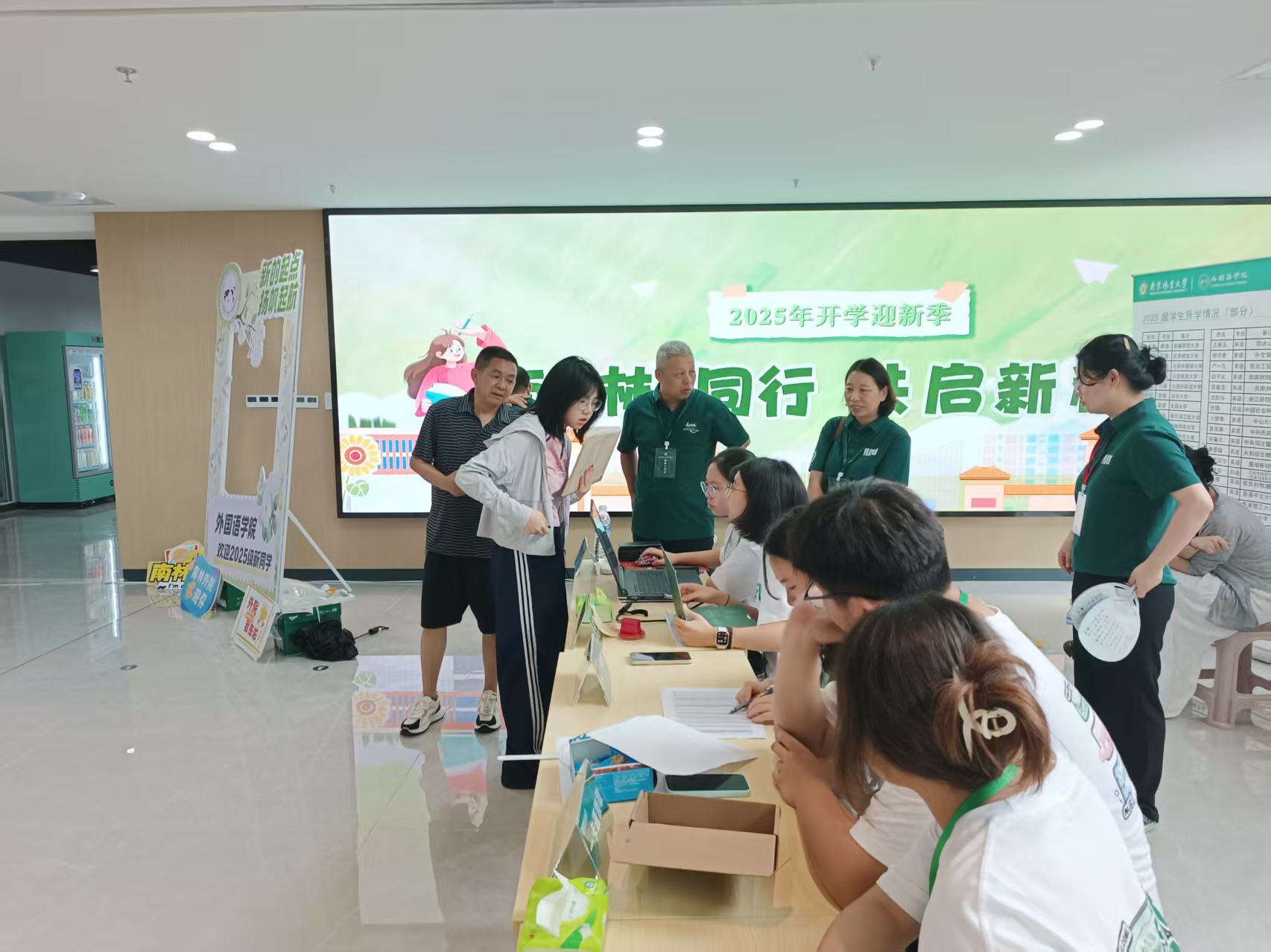 为做好迎新期间保障工作,学院成立迎新工作小组,由在校2024级本科生和研究生组建先锋模范志愿服务团队,同时多名2025级本科新生也积极加入志愿服务行列,师生齐心协力,圆满完成此次迎新工作。