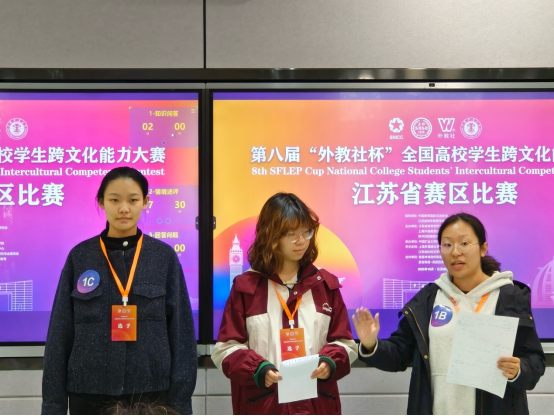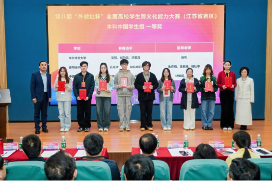 2025年10月24至26日,第八届“外教社杯”全国高校学生跨文化能力大赛江苏省赛区比赛在中国矿业大学成功举办。 本次大赛吸引了包括南京大学、东南大学、南京理工大学等在内的全省七十多所高校的积极参与,共有81支优秀队伍同台竞技。在我院赵莉老师的指导和带领下,由我院英语专业学生吴悠、家居与工业设计院学生郑韵瑶及人文社会科学学院学生毕英滢组成的参赛团队在同组49支队伍中脱颖而出,荣获一等奖。