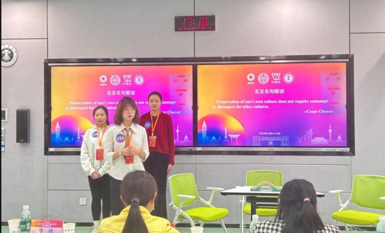 我校参赛团队展现了扎实的跨文化素养与沟通协作能力。本届大赛校赛环节于六月启动,同时选拔确定参加省赛人选。师生利用暑假时间系统学习跨文化理论,仔细研读历年获奖案例,并结合社会热点创作参赛案例。本学期开学后,进一步加强加密培训力度和频次,深入学习理论、训练即兴演讲能力、反复打磨案例脚本。在省赛中,团队成员配合尤为默契,现场提问环节回答完整,名言解读部分发挥出色,以优异的表现斩获省级决赛一等奖。
