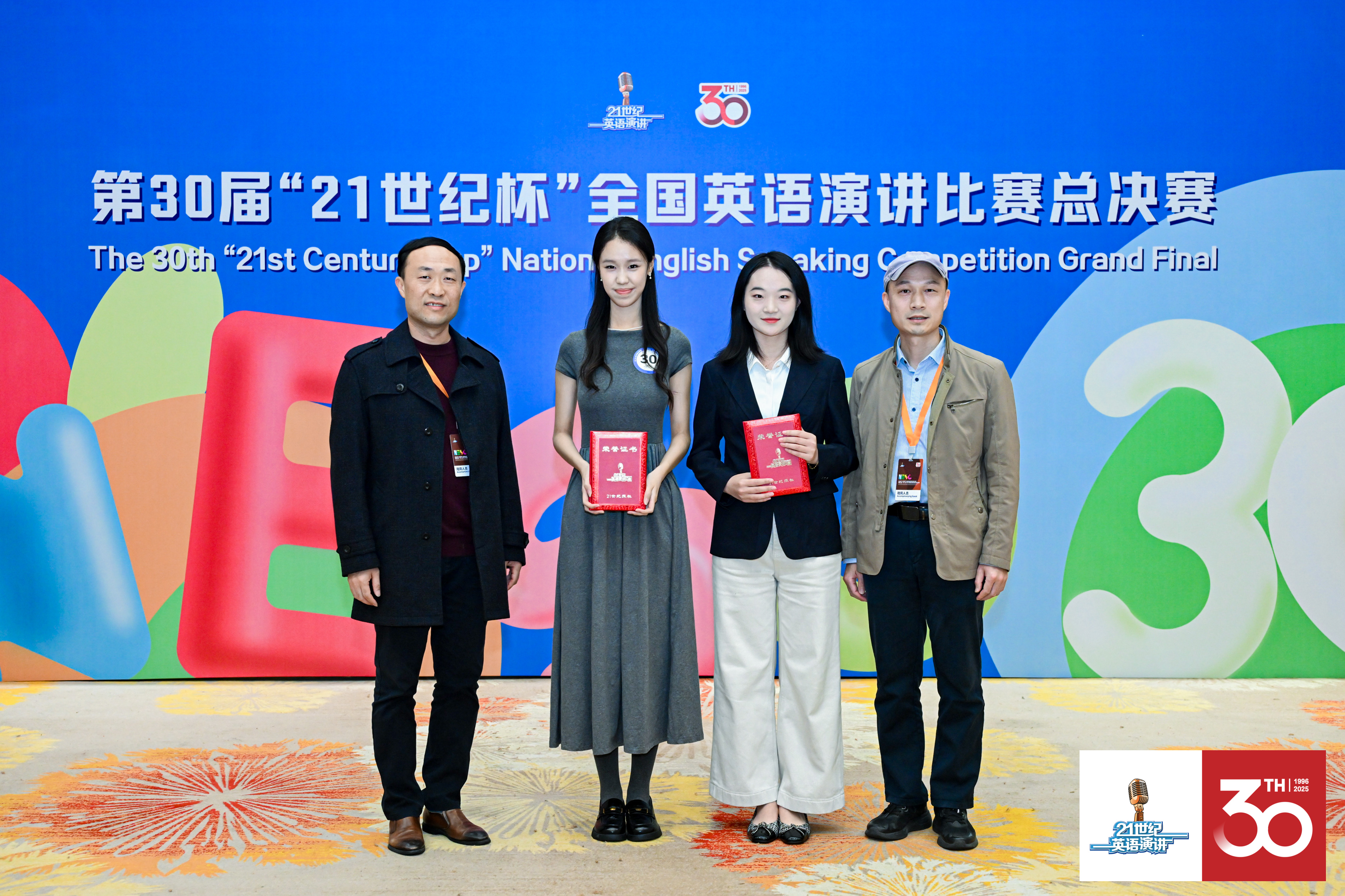 “21世纪杯”全国英语演讲比赛始于1996年,作为教育部批准的全国性权威赛事,以其严谨的赛制与严格的评判标准著称,已入选《2025全国普通高校大学生竞赛分析报告》,广受高校与社会认可。本届赛事吸引了全国各地的优秀选手同台竞技,竞争激烈。在杨喜刚、郑长明两位老师的悉心指导下,两位选手沉着应战,凭借扎实的语言功底、清晰的逻辑思维与出色的临场发挥,从众多参赛者中脱颖而出,展现了我校学子的卓越风采。