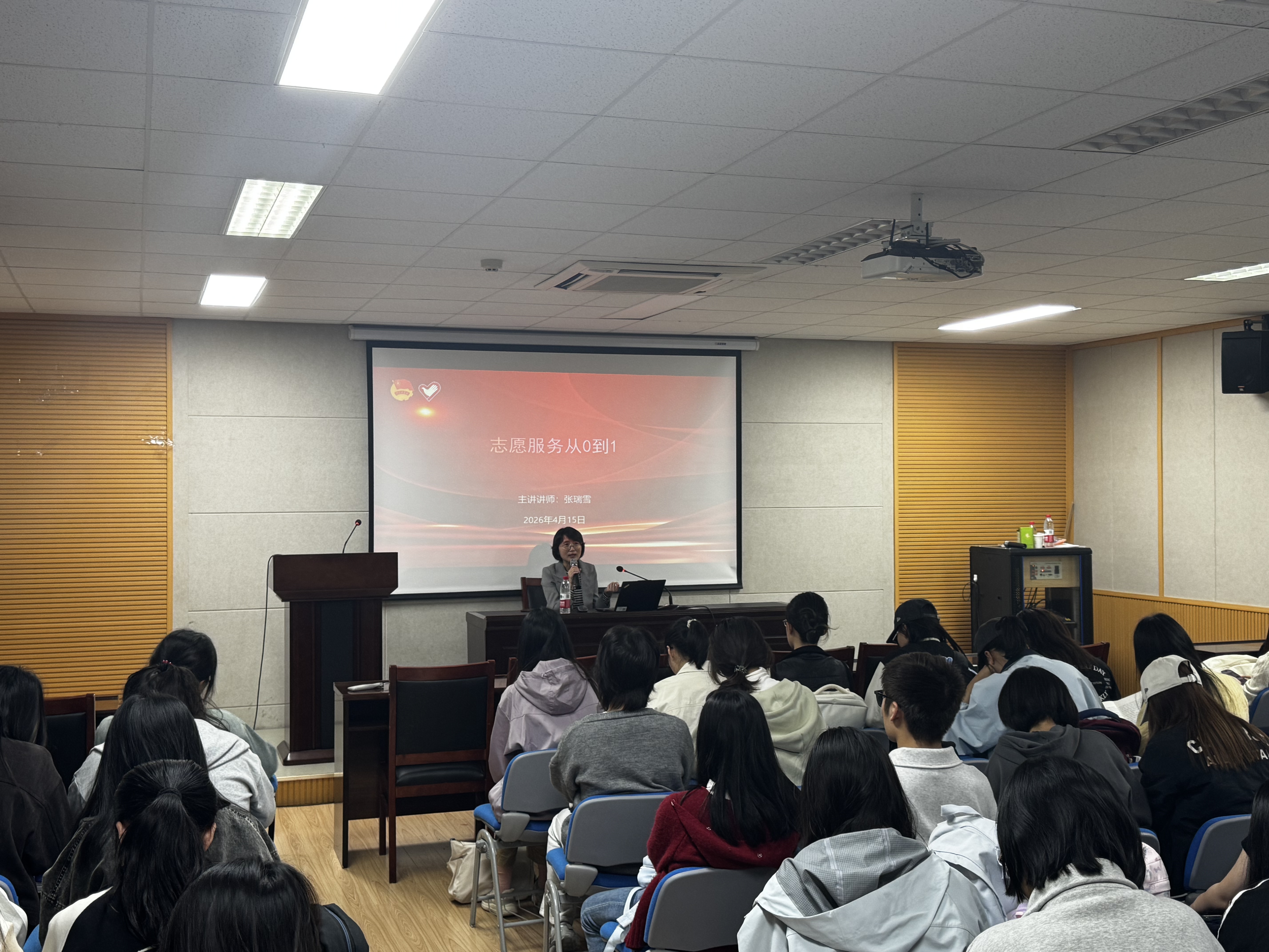 讲座中,张瑞雪系统讲解了志愿者的角色定位、志愿精神、服务原则、礼仪规范与沟通技巧。通过实际案例,她强调志愿者应具备专业素养与服务意识,做到守岗尽责、量力而行、遵守纪律、保护自我。她指出,新时代志愿服务正向专业化、项目化发展,青年应勇于创新,让志愿精神成为青春底色。